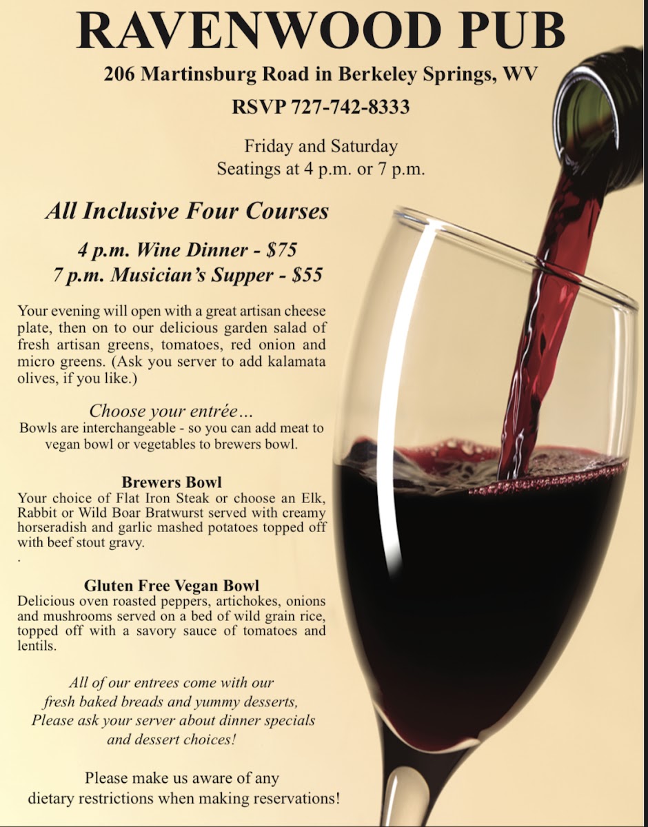 Introducing Ravenwood Pub, a culinary gem nestled in Berkeley Springs, WV. Located at 206 Martinsburg Rd, this intimate eatery creates an unforgettable dining experience where upscale American cuisine meets European Continental flair. You’ll find a thoughtful four-course menu that features wild game dishes, expertly crafted by owner-chef Regina, who also enchants guests with her musical talents.